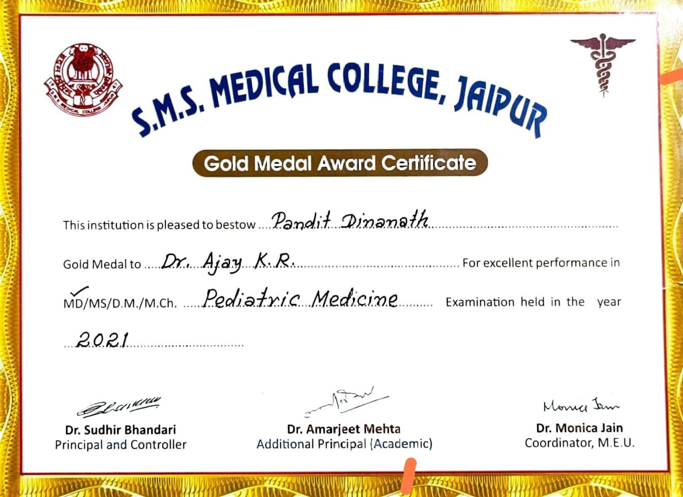 Dr. Ajay KR, a gold medalist in MD Pediatrics, brings extensive expertise in pediatric care, neonatology, and medical education.